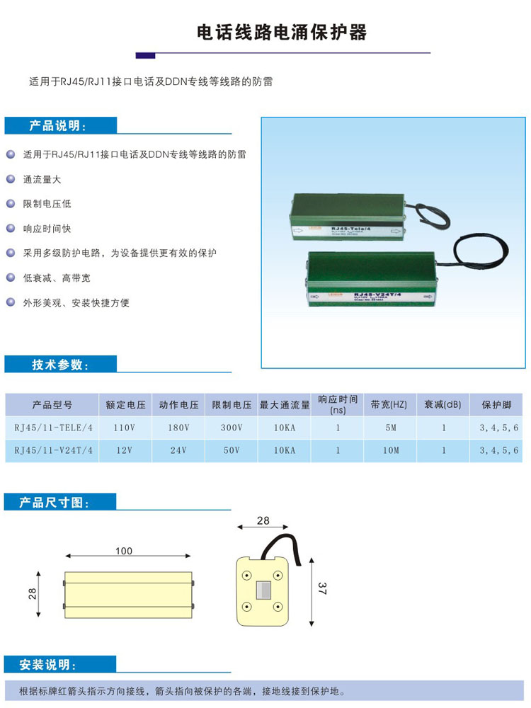商品名称:电话线路电涌保护器